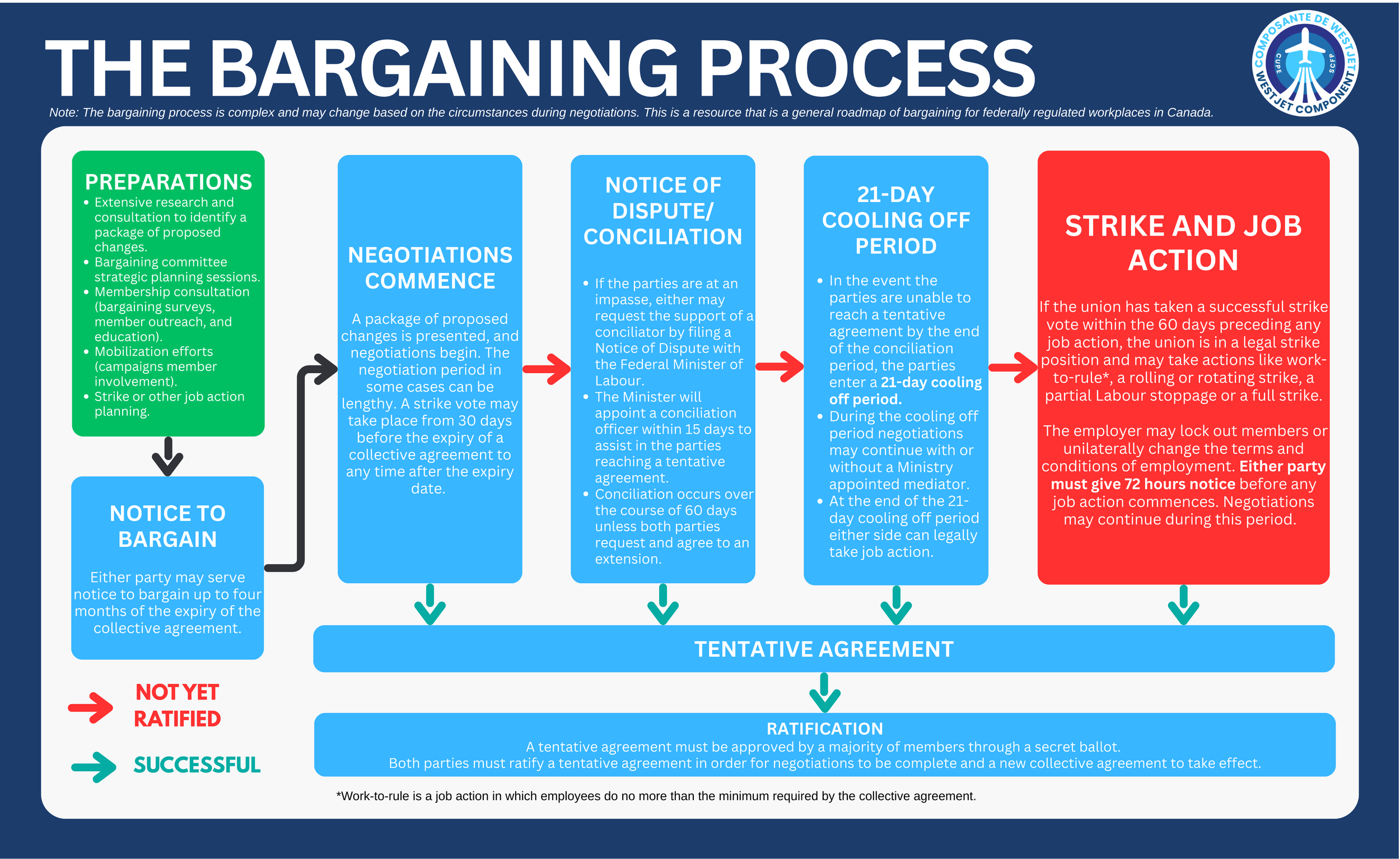 It is important to note that this outlines the general bargaining process and there may be times/circumstances where the outlined process is deviated from within the constructs of the Canada Labour Code.